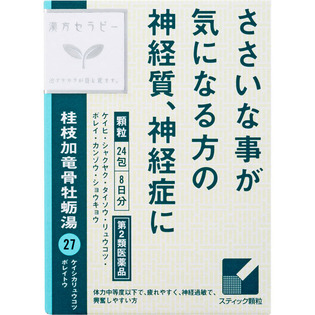 成人1日の服用量3包(1包1.0g)中、次の成分を含んでいます。桂枝加竜骨牡蛎汤エキス粉末M 1600mg〔ケイヒ シャクヤク タイソウ各2.0g、リュウコツ ボレイ各1.5g、カンゾウ1.0g、ショウキョウ0.5gより抽出。〕添加物として、ヒドロキシプロピルセルロース、乳糖、ポリオキシエチレンポリオキシプロピレングリコールを含有する。<成分 分量に関する注意>本剂は天然物(生药)のエキスを用いていますので、颗粒の色が多少異なることがあります。用法用量 <用法 用量>次の量を1日3回食前又は食間に水又は白汤にて服用。成人(15才以上) 1回量1包、1日服用回数3回15才未满7才以上 1回量2/3包、1日服用回数3回7才未满4才以上 1回量1/2包、1日服用回数3回4才未满2才以上 1回量1/3包、1日服用回数3回2才未满 1回量1/4包、1日服用回数3回<用法 用量に関する注意>(1)小児に服用させる場合には、保護者の指導監督のもとに服用させてください。(2)1才未满の乳児には、医師の診療を受けさせることを優先し、止むを得ない場合にのみ服用させてください。